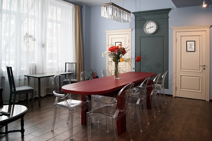 Обстановка в гостевом доме комфортная, чистая, особенно понравилась приятная обеденная зона. Номера современные, есть всё необходимое: вешалки, место для чемодана, зеркало, шторки и возможность проветрить помещение. Отдельно отмечу тишину и близость к метро.